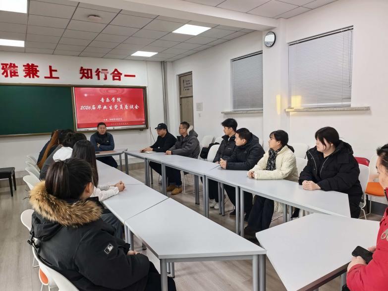为精准掌握毕业生就业意愿、推动实现高质量充分就业,12月17日,音乐学院聚焦2026届毕业生党员和家庭经济困难学生群体,召开专场就业座谈会。学院党总支书记徐铁军,副书记、副院长张孝伟,学工办主任、分团委书记郝苗及辅导员罗英恺、于海腾出席会议。